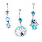 Evil Eye Belly Button Ring Package of 3 / Tree of life, Infinite love and Hamsa Hand Dangle Design