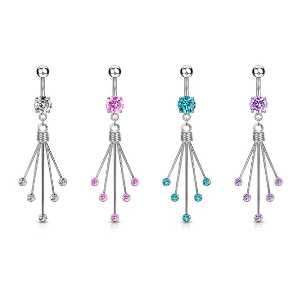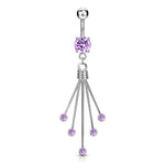 Navel Belly Ring Titanium Shaft with Round dangle CZ 14 Gauge