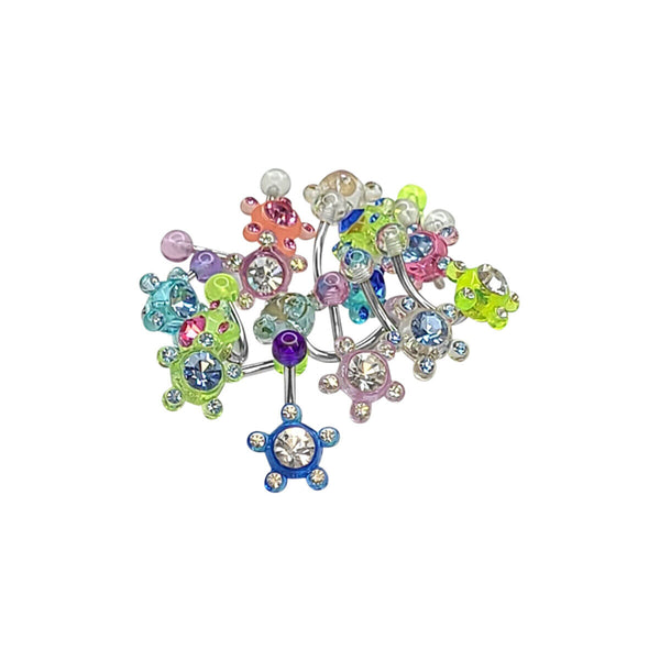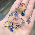 Pack of 6 Belly Navel Ring Acrylic Flower with Multiple CZ Gems 14 Gauge