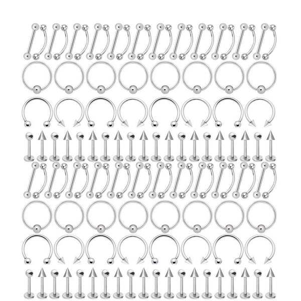 Body Jewelry 150pcs + 10 Needles Piercing Kit Starter Lot Belly Lip Nose Rings Nipple Barbell