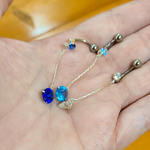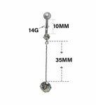 Round 4 Prong CZ Dangling Chain Belly Navel Ring Surgical Steel 14g - 3/8" (10mm) Shaft: 3/8" - 10mm Dangle: 35mm Top Jewel: 4mm Bottom Jewel: 8mm Externally threaded Color...