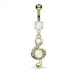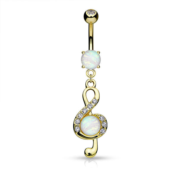 Treble Clef Design Dangling 14ga Belly Ring with Opal Glitter Stones
