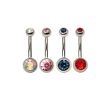 (4)Double-Jeweled Belly Rings (Red, Blue, Pink, Aurora Borealis)