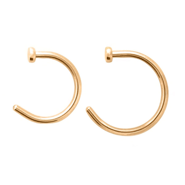 BODY JEWELRY ONLINE 2 Pack of Nose Piercing Hoops Ion-Plated Rose Gold Surgical Steel DESCRIPTION Available in 18ga (1 mm) or 20ga (.8 mm) 2 lengths available: 3/8"(10 mm) and...