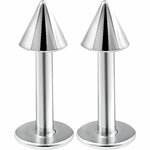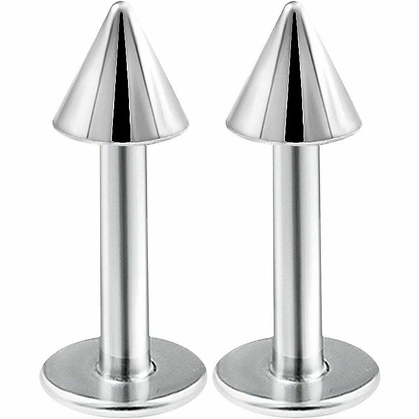 2 pcs 16g Labret Lip Steel Stud Monroe Cartilage Tragus Helix Conch Piercing cone spikeAvailable sizes: 16g 1/4" , 16G 5/16",16G 3/8" ,16G 7/16" 16g 1/2" , 16g 9/16" 16G...