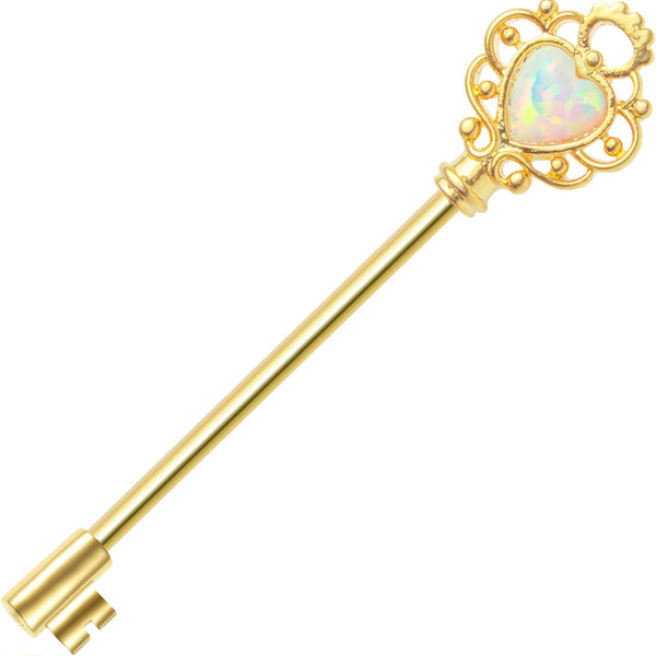 Industrial Piercing Barbell Heart Key Design with OpaliteDescription Beautifully crafted Victorian key design Features heart-shapedopalite Gold I.P. for durability and long-lasting color Can be used in left or right ear...