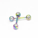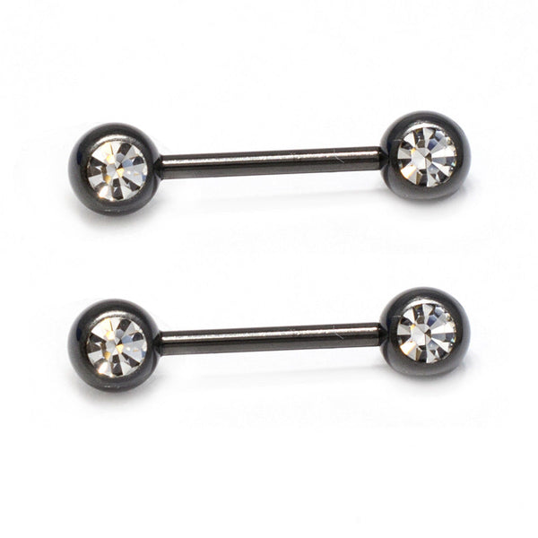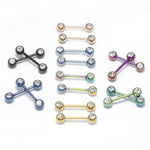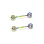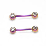 Nipple Ring Anodized Titanium 14G Nipple Piercing Barbell Front Facing Clear CZ