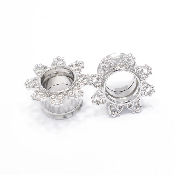 Pair of Ear Piercing Tunnels - Tribal Hearts Filigree Double Flare