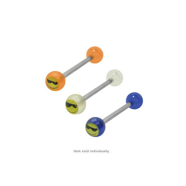 Sunglasses Smiley Tongue Barbell Ring Body Jewelry Piercing Bar 14G