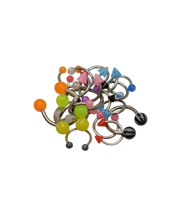 Value Pack: 20 Pieces Randomly Selected all with a Surgical Steel Shaft and Acrylic Spike/Ball Ends.