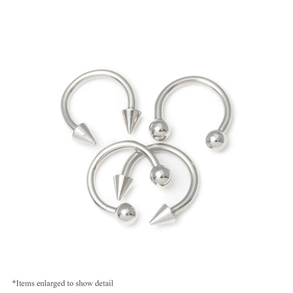 Includes 4 Horseshoe Barbells - 2 with ball ends and 2 with spike ends