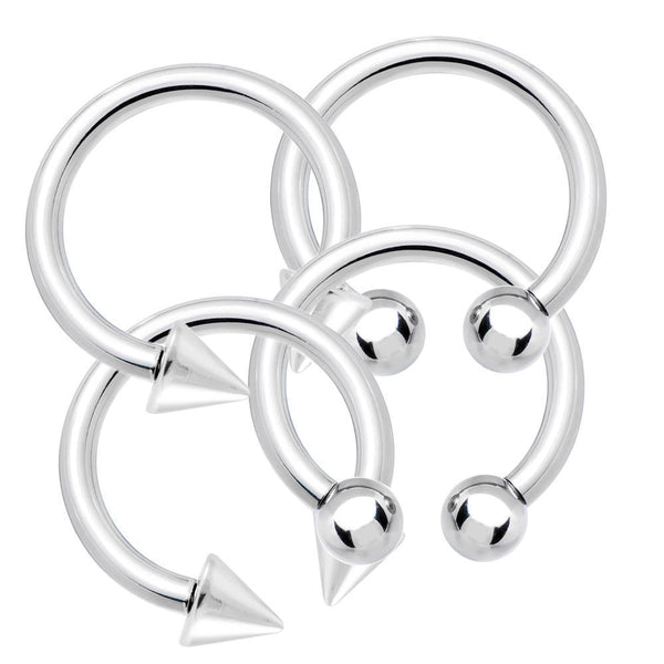 8ga Horseshoe Circular Barbells 4-Pack - Pair 316L Steel 5/8" - Nipple, Ear, PA