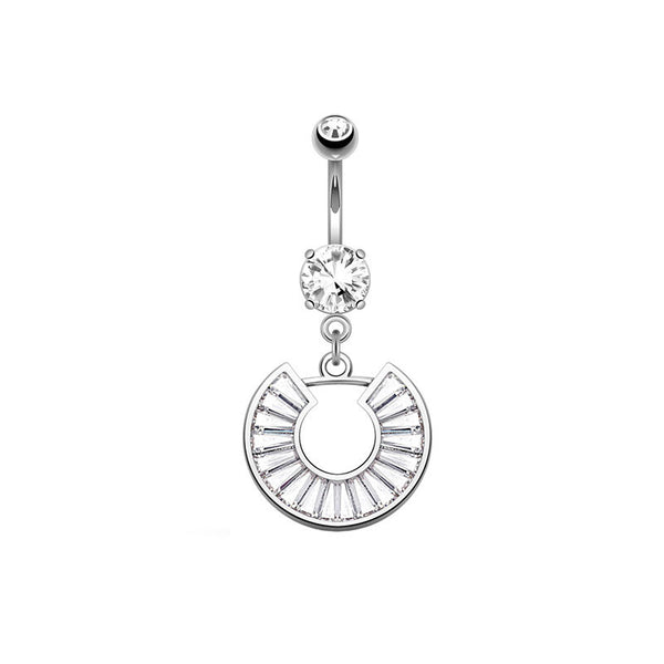 Dangling 14ga Belly Ring with Princess Cut CZ Paved Horseshoe