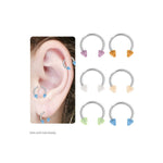 This is a 316L high-grade surgical steel cartilage, tragus horseshoe ring with Glow in the Dark UV acrylic spike beads.