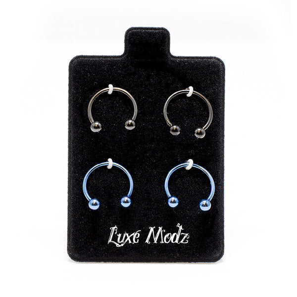 Horseshoe Ring 4 Pack Anodized 18G Circular Barbell Blue & Black Nose Lip Rings