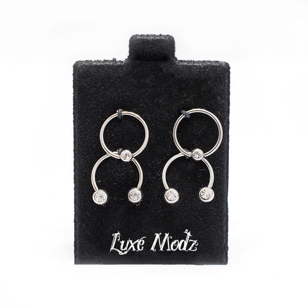 Included is 2 Captive Bead rings with 3 mm Front Facing Clear CZ Gem and 2 Circular Barbell Rings with4 mm Front Facing Clear CZ Gems.