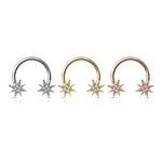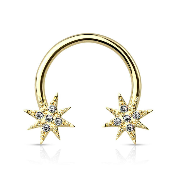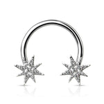 Pair of Crystal Paved Starburst Ends 316L Surgical Steel Circular Barbell/Horseshoe for nipples