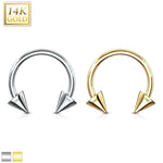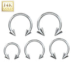 Spike End Horseshoe Circular Barbell 14 Karat Solid Gold 14G - 16G