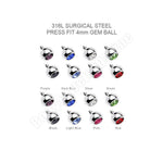 16 pc Surgical Steel Press Fit 4mm Gem Ball