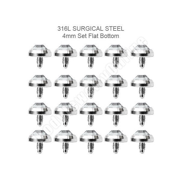 This is a 16 gauge internally threaded surgical steel 4mm gem set flat bottom dome for internally threaded dermal anchors.