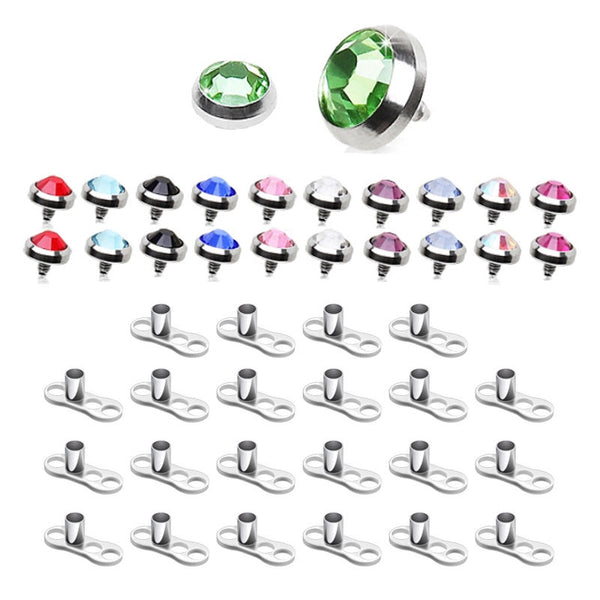 Dermal Piercing Jewelry Multi Press-Fit Gem - 22 Tops & 22 Bottoms