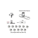 Set of 25 Solid Titanium Base & 5MM Dermal Top Piercing Jewelry