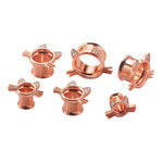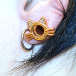 2 Gauge Ear Plugs Cat design with Clear Round Cubic Zirconia. Double Flare Ear Plugs Tunnels. Rose Gold IP. Pair of Ear tunnels