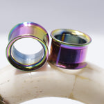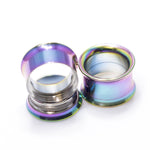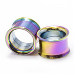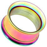 Ion-Plated Rainbow Double Flared Screw-Fit Ear Plugs - 8 Gauge to 1 Inch