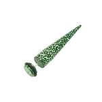 This is an acrylic green and black spots design fake ear stretcher with black rubber "O" ring.
