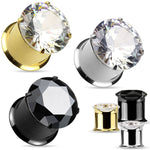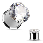 Pair of Prong Set Round CZ Top Double Flared Tunnels - 10G to 1/2" Gauge Description Sold in pairs and available in 8 sizes - 10ga(2.4 mm) to 1/2"(12 mm)...