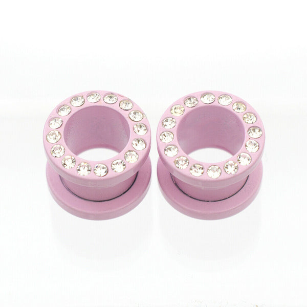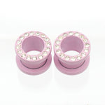 Plugs Matte Pastel Pink Screw Fit with Cubic Zirconias - Sold as a Pair Surgical Steel Description Pair of Matte Pastel Pink Screw Fit Cubic Zirconia Plugs- Surgical Steel Multiple...