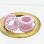 Plugs Matte Pastel Pink Screw Fit with Cubic Zirconias - Sold as a Pair Surgical Steel