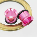 Tunnels Anodized Metallic Pink with O-Rings - Sold as a Pair Surgical Steel