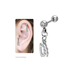 This is a 316L surgical steel brass knuckle cartilage/tragus earring with a clear CZ jewel on front bead.