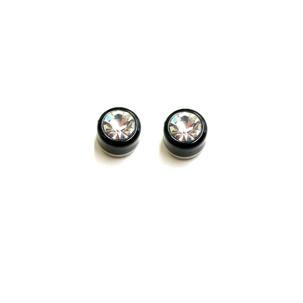 Earrings Magnetic Black with Press Fit 4mm Cubic Zirconia -Sold as a Pair