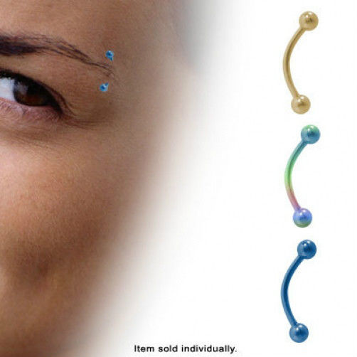 This is an anodized Titanium curved barbell eyebrow ring with ball beads.