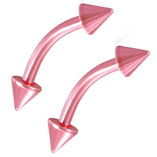 Eyebrow Barbells Curved Anodized Hot Pink Spike End Sold as a Pair 16ga Surgical Steel