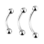 Package includes (3) 16 Gauge curved barbell Shaft with a length of 6mm, 8mm, and 10mm and ball size of 3mm.