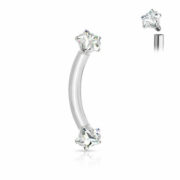 This is an internally threaded 16 gauge surgical steel eyebrow that comes with a 3mm prong fit star cz jewel.