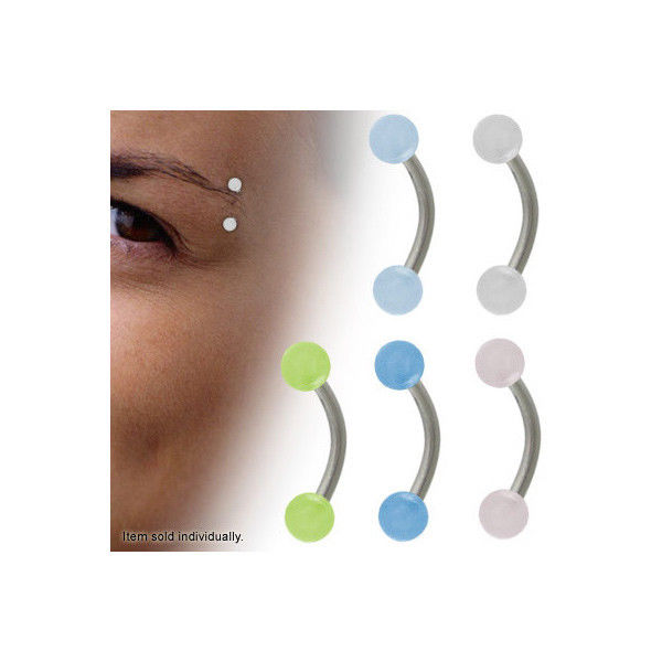 Glow in the Dark 16G Eyebrow Ring with Acrylic Ball Beads Description This is a 316L high-grade surgical steel curved eyebrow ring with Glow in the Dark UV acrylic ball...