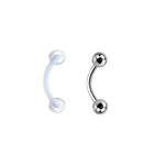 Included Is A 16g Curved Barbell With A Length Of 8mm And Ball Size Of 3mm And 18G 8MM Clear Bioflex Retainer.