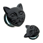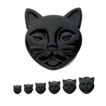 Pair of Double Flare Black Cat Head Design Ear Plugs Made of Glass