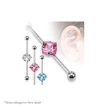 Industrial Barbell 14G with Square CZ Gems in 3 Different Colors