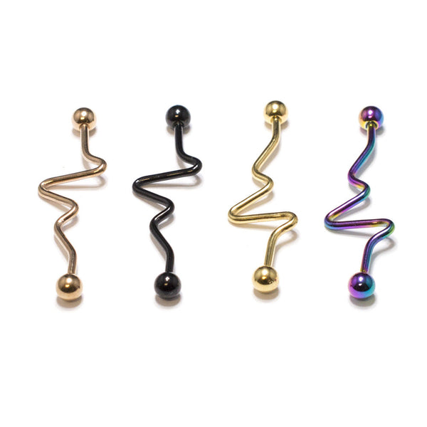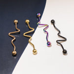 4 Anodized Titanium 14 Gauge Industrial Barbell with Spiral DesignDescription