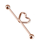 BODY JEWELRY ONLINE Industrial Barbell Scaffolding Jewelry Heart 14G 1.5" 38MM Anodized Titanium DESCRIPTION This is a Anodized Titanium Over Surgical Steel Industrial barbell with a Heart Shape in 4...