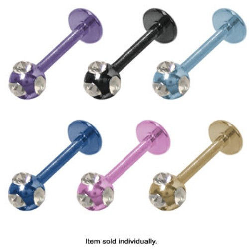 Anodized Titanium Labret Monroe with CZ Gems (16G - 8mm)
