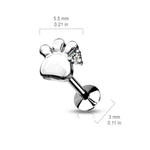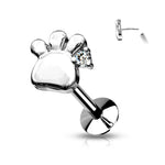 Labret, Flat Back Studs For Ear Cartilage and Nose Paw Design Threadless Top 3 Surgical Steel Push in Style
