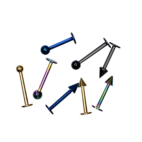 Labret Flat end balls and spikes Anodized Titanium over surgical steel Good For Lip Ear and more 16 Gauge Package Deal 8 pieces
