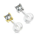 Labret Monroe with Square Princess Cut CZ Prong Set Design on Flex Shaft 14 Kt Solid Gold 16g