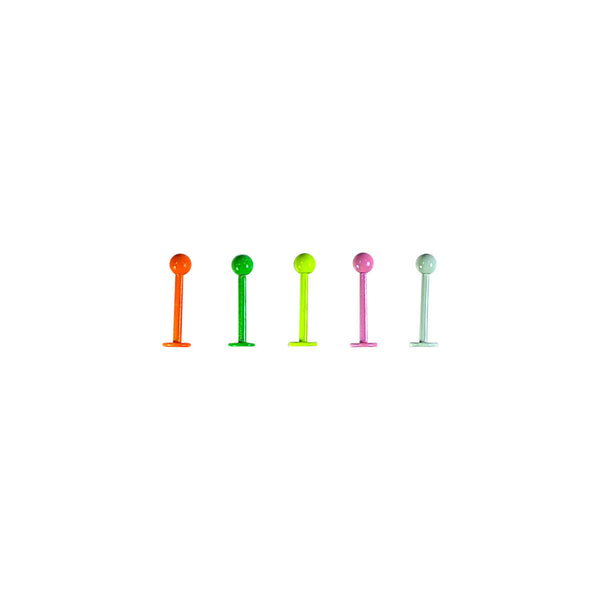 Pack of 5 Neon Enamel Coated Surgical Steel Labret Round Ball 16g 8mm